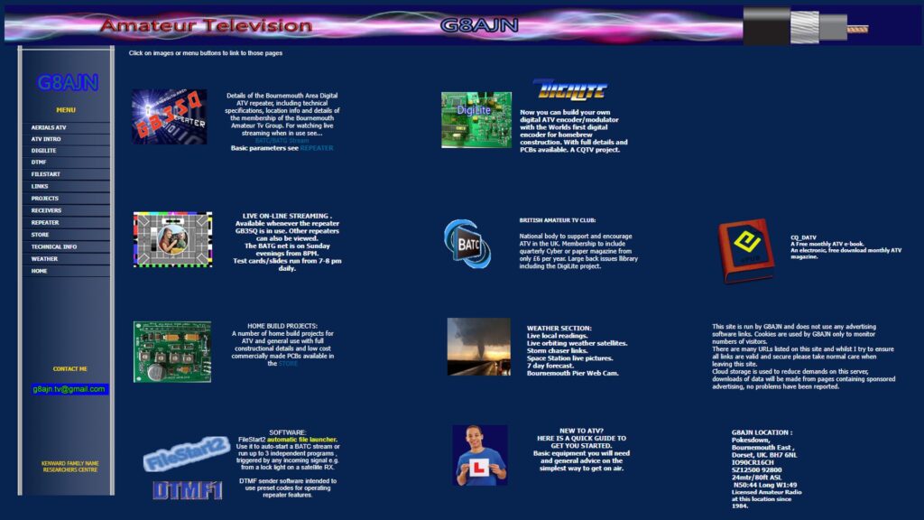 Following Dave G8AJN’s passing, his informative website was been preserved in its original format by using web archive sources and private archives of his work. The snapshot is dated April 2017. It contains articles on video, audio, antennas, transmitters and receivers for ATV. There’s a lot of information on the early digital ATV system known as Digilite too.